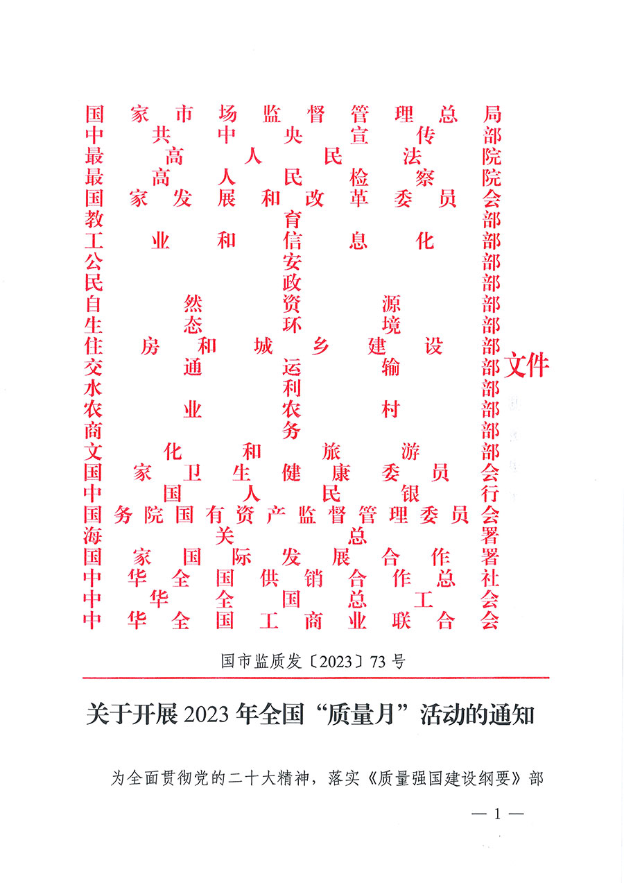 市場監(jiān)管總局等25個部門聯合開展全國“質量月”活動