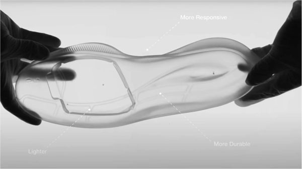 “氮?dú)獬R界物理發(fā)泡、一體成型,讓運(yùn)動(dòng)選手上場(chǎng)就能爆出好料”——這是安踏氮科技帶來的直觀表現(xiàn)!現(xiàn)場(chǎng),安踏品牌鞋創(chuàng)新管理中心高級(jí)總監(jiān)蔡之本解讀了“動(dòng)創(chuàng)未來”這一主題,同時(shí)他還列舉了一組數(shù)據(jù)——氮科技加持下的材料實(shí)現(xiàn)能量回歸率高達(dá)86.8%,材料密度僅為0.09g/cm³,耐久性方面提升30%,綜合性能表現(xiàn)遠(yuǎn)高于同行。