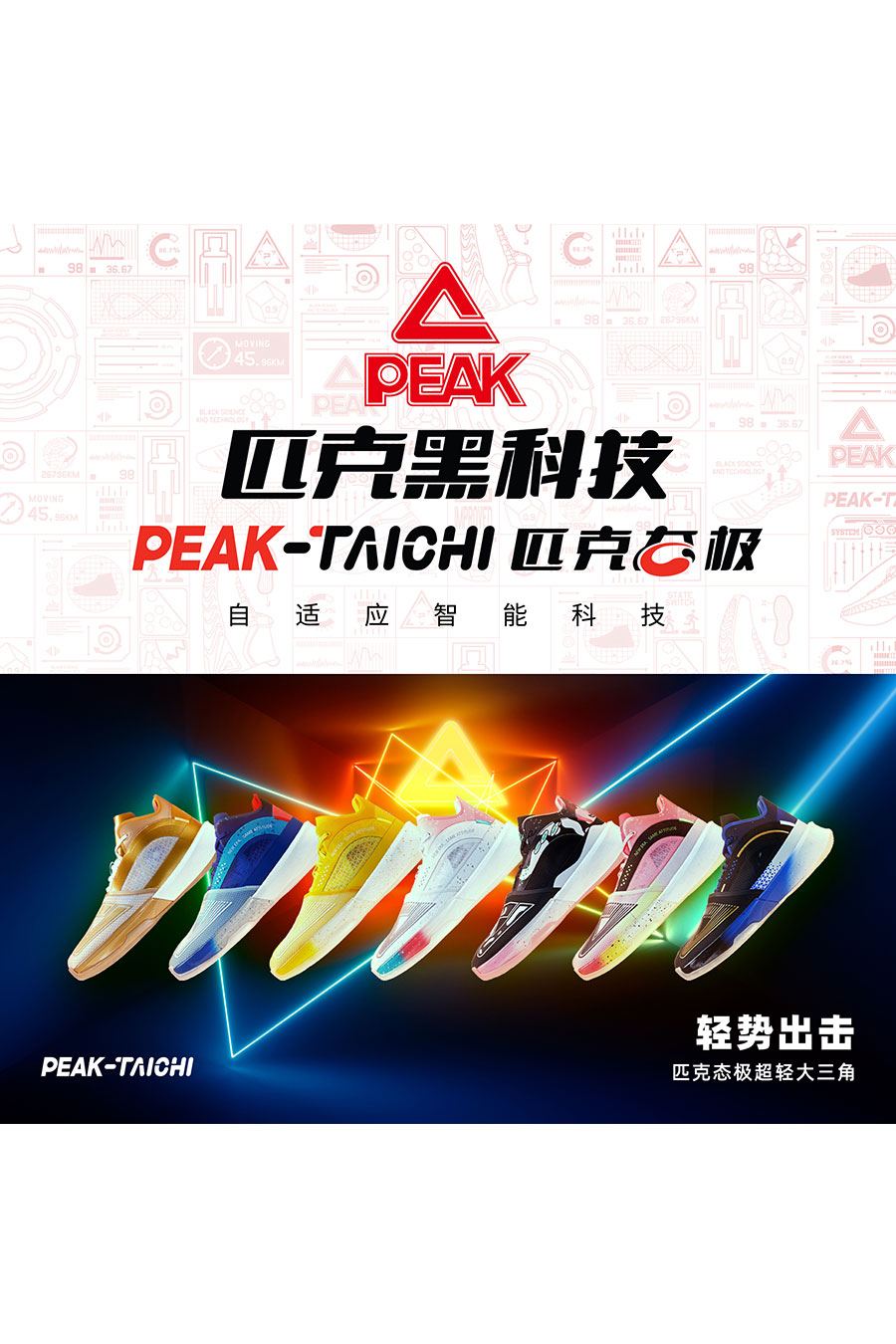 近年來(lái),匹克以科技創(chuàng)新為驅(qū)動(dòng),實(shí)施產(chǎn)業(yè)升級(jí)。2018年底,由匹克自主研發(fā)的“態(tài)極”科技,因其鞋底瞬間軟彈的特性,打破國(guó)際技術(shù)壟斷,受到了消費(fèi)者的熱捧,引爆市場(chǎng)。依托于“態(tài)極”科技,匹克還開發(fā)出跑步鞋、休閑鞋、拖鞋、籃球鞋等系列產(chǎn)品,多品類銷售躋身行業(yè)前五,成為新國(guó)潮代表。截至目前,匹克擁有核心專利近300個(gè),還在3D打印科技、超氫科技等前沿科技創(chuàng)新引領(lǐng)。