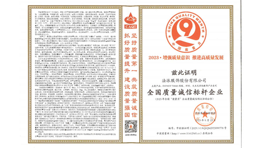 誠信經(jīng)營是企業(yè)的道德底線,保證質(zhì)量安全是企業(yè)的責任。法派決心落實質(zhì)量誠信的各項承諾,牢固樹立“誠信至上、以質(zhì)取勝”的經(jīng)營理念,以誠信鑄品牌,以質(zhì)量求發(fā)展。