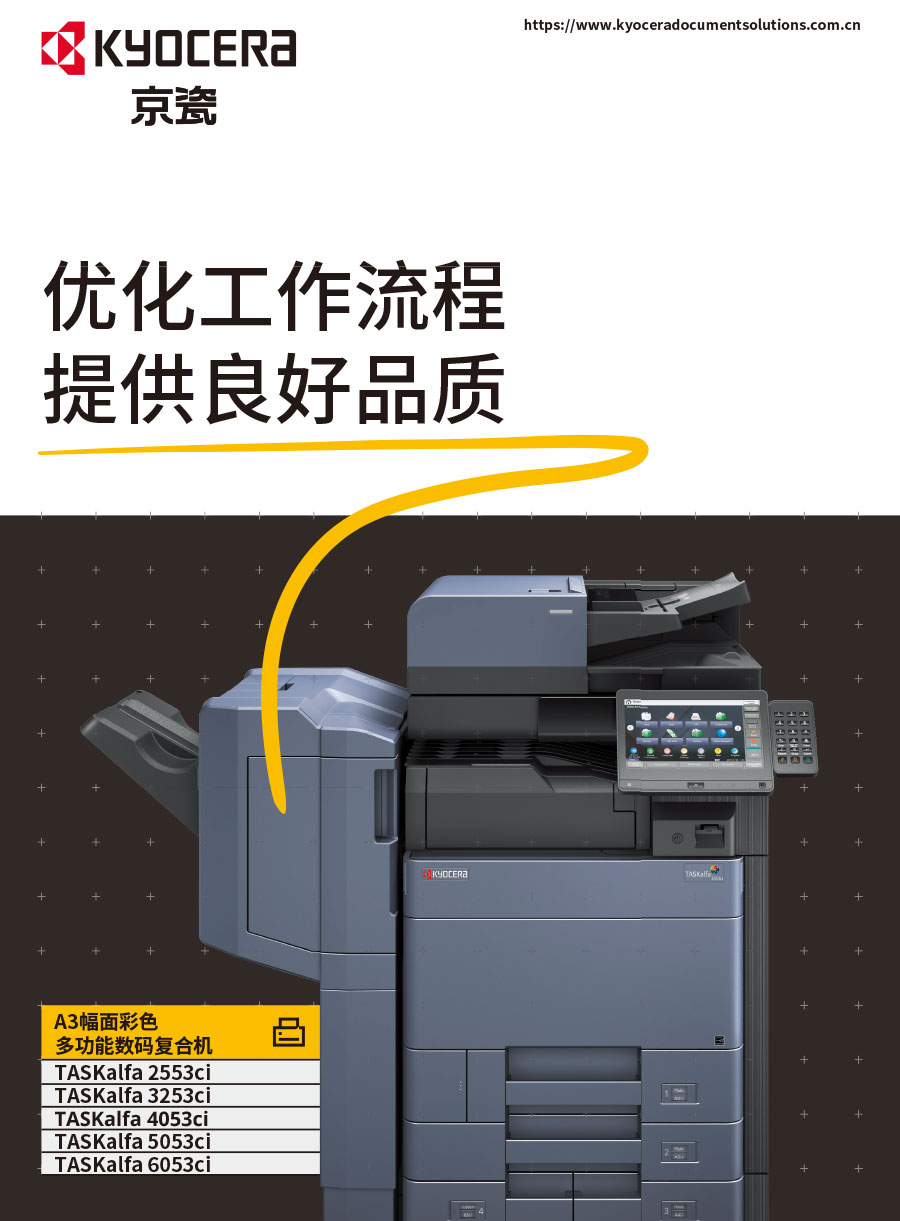 京瓷辦公信息系統(tǒng)(中國)有限公司主要負(fù)責(zé)彩色和黑白數(shù)碼復(fù)合機(jī)、彩色和黑白數(shù)碼激光打印機(jī)、生產(chǎn)型彩色噴墨印刷系統(tǒng)、辦公解決方案等系列辦公自動化設(shè)備的銷售。京瓷辦公設(shè)備將一如既往延續(xù)ECOSYS理念,始終站在時代前沿,以科技服務(wù)社會,堅持開發(fā)更能滿足時代需求、更為綠色的新銳產(chǎn)品,使用戶都能夠從中獲得更大的利益。