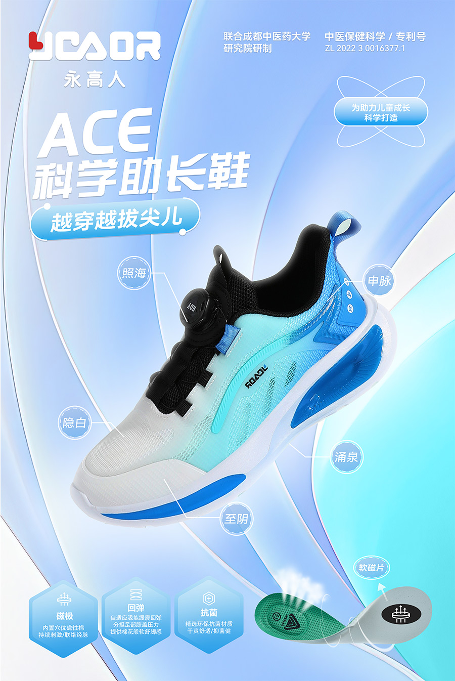 2021年,永高人順應(yīng)國(guó)內(nèi)消費(fèi)升級(jí),與國(guó)際超級(jí)IP海綿寶寶跨界合作,繼續(xù)引領(lǐng)兒童鞋服時(shí)尚前沿趨勢(shì)。此外,還攜手成都中醫(yī)藥大學(xué)專(zhuān)家團(tuán)隊(duì)聯(lián)合研制“永高人科技助長(zhǎng)保健鞋”系列產(chǎn)品,通過(guò)“磁刺激”對(duì)足部穴位按摩,聯(lián)絡(luò)身體經(jīng)脈,從而調(diào)節(jié)臟腑器官的機(jī)能活動(dòng),助力兒童身高成長(zhǎng)發(fā)育。