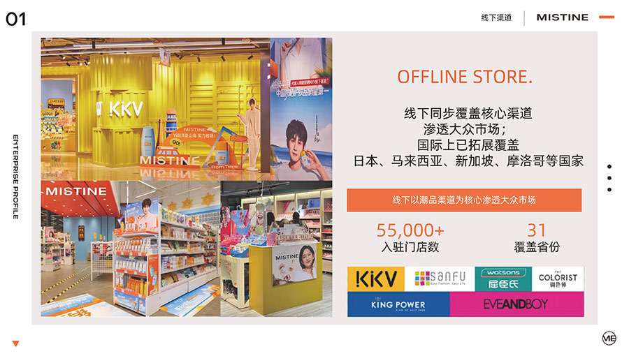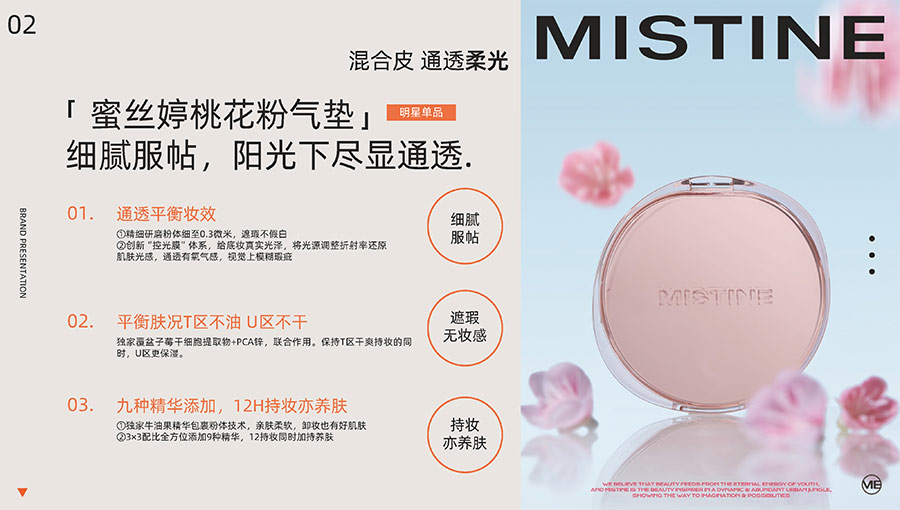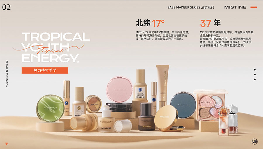 主要產(chǎn)品:MISTINE蜜絲婷防曬、美妝、底妝、彩妝、護(hù)膚、香水、個(gè)護(hù)等產(chǎn)品