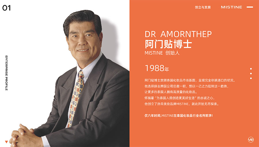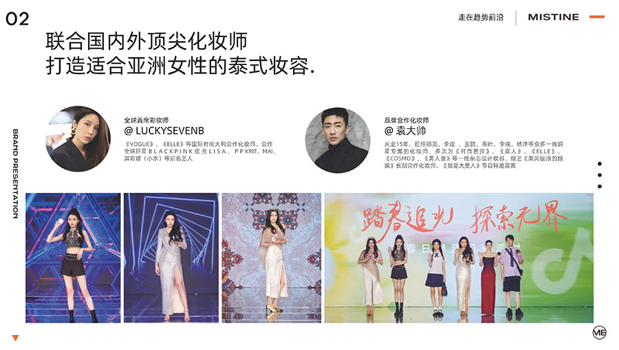 MISTINE蜜絲婷1988年始源于泰國,作為知名國際美妝品牌,擁有36年科研底蘊(yùn),產(chǎn)品種類涵蓋防曬、美妝、護(hù)膚、香水、個(gè)護(hù)五大類,擁有近6000多個(gè)單品暢銷全球20多個(gè)國家,專注為全球女性提供豐富、安全、高品質(zhì)的美妝產(chǎn)品。自2016年進(jìn)入中國后,MISTINE蜜絲婷以“熱帶青春能量美妝”為品牌定位,為年輕人打造更懂得他們的全新美妝產(chǎn)品,并傳遞獨(dú)特的健康活力生活方式。