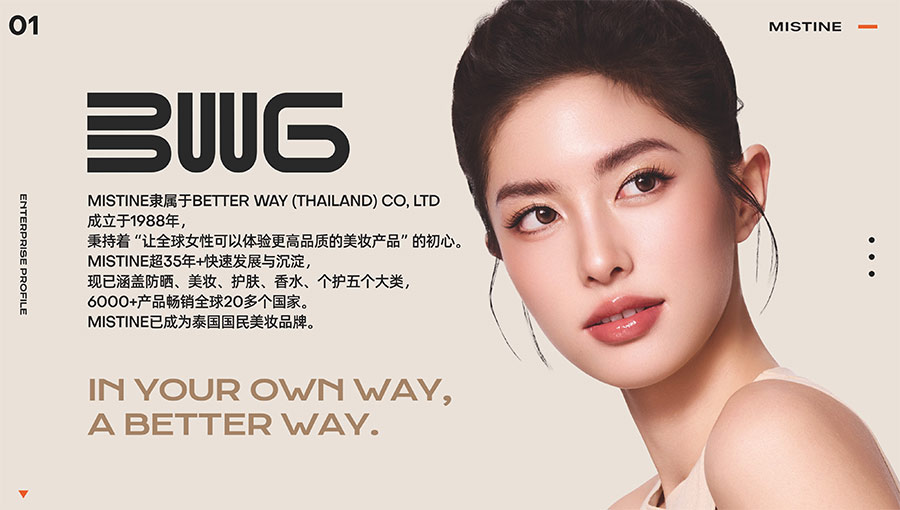 MISTINE蜜絲婷1988年始源于泰國,作為知名國際美妝品牌,擁有37年科研底蘊(yùn),產(chǎn)品種類涵蓋防曬、美妝、護(hù)膚、香水、個(gè)護(hù)五大類,擁有近6000多個(gè)單品暢銷全球20多個(gè)國家,專注為全球女性提供豐富、安全、高品質(zhì)的美妝產(chǎn)品。自2016年進(jìn)入中國后,MISTINE蜜絲婷以“熱帶青春能量美妝”為品牌定位,為年輕人打造更懂得他們的全新美妝產(chǎn)品,并傳遞獨(dú)特的健康活力生活方式。
