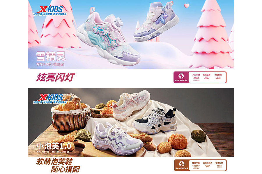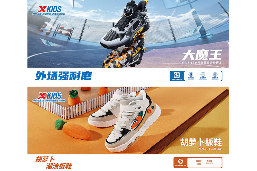 主要產(chǎn)品:特步兒童童鞋、童裝、兒童配件