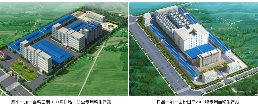 2011年11月29日,一加一遂平公司“二期國內第一條日產(chǎn)1000噸防哈、防蟲面條專用粉生產(chǎn)線”正式奠基。該生產(chǎn)線采用先進的工藝設備和管理理念、選用色選機和殺蟲機,包裝和倉儲均選用無菌技術,填補國內面粉加工企業(yè)在有效控制面粉蟲卵和哈變技術上的空白。