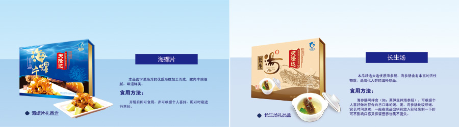 主要產品:天隆達牌即食海蜇、海草、海帶、海參、鮑魚等