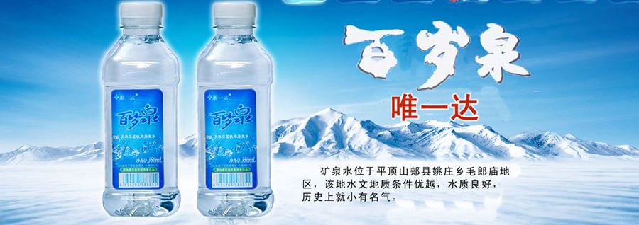 水是生命之源,科學飲水是健康第一要素。為滿足人們不斷上升的礦泉水質量和品位的要求,湖南百歲泉飲品有限公司在全國各地多年研究、考察,終于在有幾千年文化歷史的茶馬古道——郟縣毛郎廟,找到了適合中國人體質特點的健康、優(yōu)質礦泉水——“唯一達百歲泉”。目前,湖南百歲泉飲品有限公司全權負責“唯一達百歲泉”中國區(qū)總經銷權,得到郟縣政府大力支持。