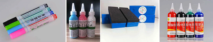 煜輝主要產(chǎn)品——液體粉筆及環(huán)保可擦墨水。煜輝公司為中國3000萬教師和4億學(xué)生健康著想,立志于解決傳統(tǒng)粉筆粉塵污染問題,決定開發(fā)液體粉筆,還給廣大師生一個健康潔凈的學(xué)習(xí)環(huán)境。2003年—2008年,經(jīng)過努力,彩色液體粉筆終于成功問世。該產(chǎn)品共有黑色、紅色、藍色、綠色四種顏色。液體粉筆墨水灌裝在筆內(nèi),在米黃色教學(xué)板上書寫,字跡清晰,顏色多樣化能滿足教學(xué)質(zhì)量;書寫流暢,摩擦力小,減少教師板書疲勞;擦拭無塵,能讓教師輕松愉快地講解,提高教學(xué)質(zhì)量。煜輝公司生產(chǎn)的彩色液體粉筆,使用前學(xué)校只需投入很少的資金,在不改變原有教學(xué)板性質(zhì)的情況下簡單改造黑板,就可以正常使用該產(chǎn)品。這樣就降低學(xué)校的使用成本,為煜輝產(chǎn)品迅速進入市場創(chuàng)造了有利條件。