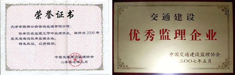 自1998年起,先后有津榆公路蘆臺(tái)大橋、東方紅路跨京福高速公路立交橋、北華路、朝陽(yáng)道、邦喜、津漢、薊官、潘青、津薊高速公路、寶平公路大修、躍進(jìn)路、大陳路等37項(xiàng)大修改建監(jiān)理工程被評(píng)為天津市政公路工程質(zhì)量金獎(jiǎng);公司承擔(dān)的江西贛定高速公路、陜西延塞高速公路、黃陵高速公路、浙江龍游高速公路、內(nèi)蒙古哈磴高速公路、京滬高速公路等外埠監(jiān)理項(xiàng)目多次受到業(yè)主和當(dāng)?shù)卣募为?jiǎng)。目前,京津高速公路、津汕高速公路、國(guó)道112線、京津高速延長(zhǎng)線、海濱高速公路、內(nèi)蒙呼市繞城高速公路、江西萍洪高速公路、山西晉候高速公路機(jī)電工程和市內(nèi)27項(xiàng)獨(dú)立項(xiàng)目均為在監(jiān)工程。