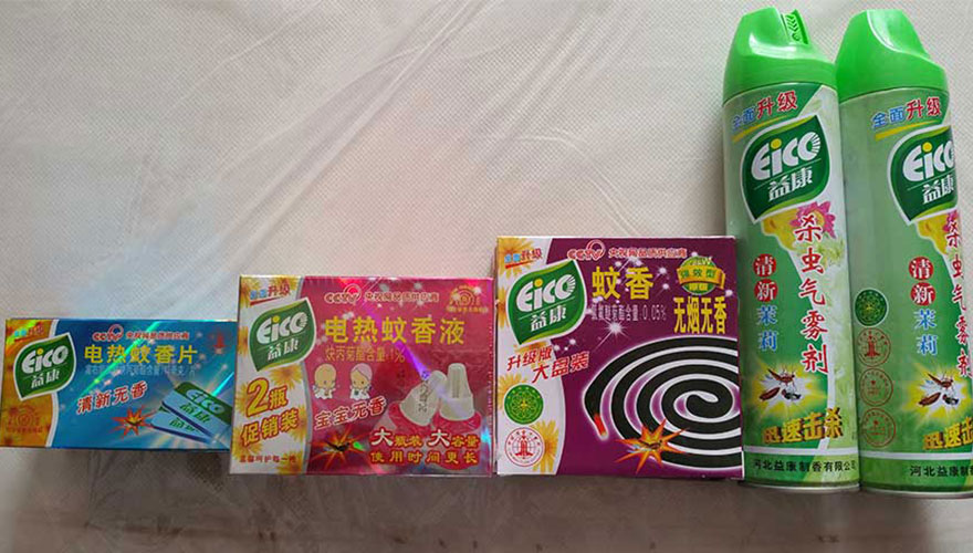 益康公司現(xiàn)有氣霧劑自動生產(chǎn)線3條,盤式蚊香自動生產(chǎn)線6條,蚊香包裝生產(chǎn)線6條,電熱蚊香生產(chǎn)線3條,主要產(chǎn)品有“益康”牌蚊香、殺蟲氣霧劑、電熱蚊香片、空氣清新劑等共六大類30多個規(guī)格型號。益康產(chǎn)品按照國家標(biāo)準(zhǔn)組織生產(chǎn),采用國家允許使用的衛(wèi)生殺蟲藥劑為有效成分,依法取得農(nóng)藥生產(chǎn)批準(zhǔn)證書和農(nóng)藥登記證,保證了產(chǎn)品的殺蟲效果和使用安全,產(chǎn)品多次經(jīng)國家有關(guān)部門監(jiān)督檢測均符合標(biāo)準(zhǔn)要求,受到各地用戶好評。