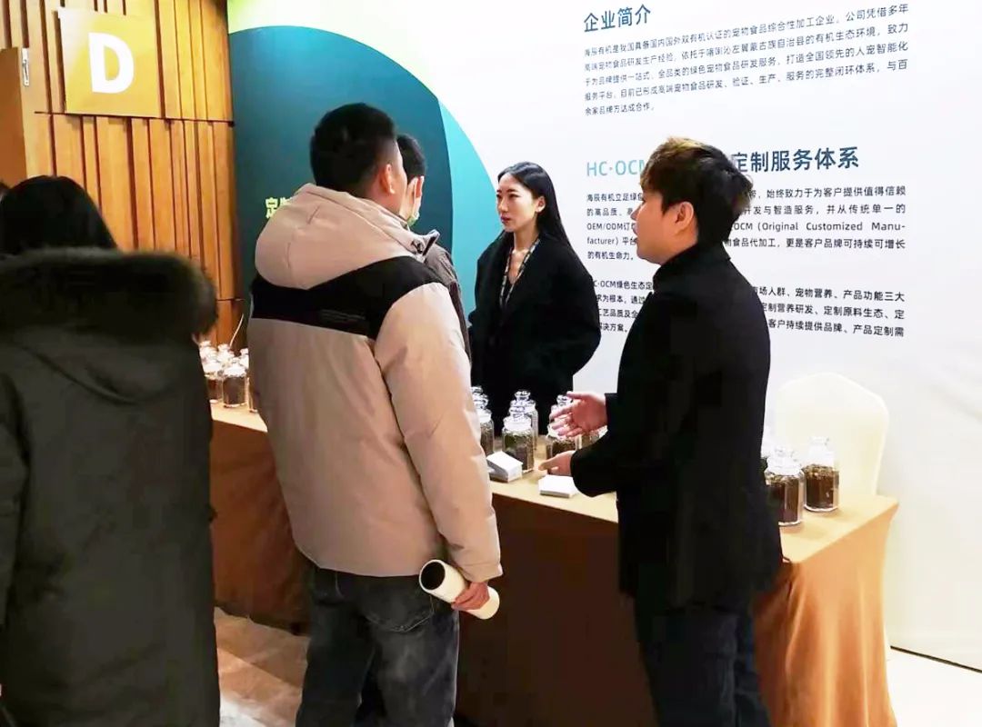在TOPS100精選供應(yīng)鏈展區(qū),海辰有機(jī)作為參展商同樣迎來(lái)了眾多寵食品牌方的駐足咨詢。業(yè)務(wù)人員圍繞“品牌定位、產(chǎn)品力打造、服務(wù)內(nèi)容”等話題為品牌方一一解答。