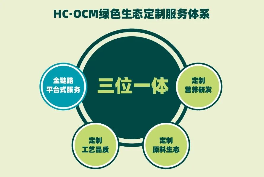 海辰有機(jī)不止提供基礎(chǔ)的OEM代工服務(wù),更從品牌客戶的市場(chǎng)人群、寵物營(yíng)養(yǎng)、產(chǎn)品功能三大需求入手,全力打造定制配方研發(fā)、定制生態(tài)原料、定制生產(chǎn)工藝、全鏈路平臺(tái)式服務(wù)四大方面在內(nèi)的HC·OCM綠色生態(tài)定制服務(wù)體系,為合作品牌的成長(zhǎng)提供強(qiáng)有力支撐。