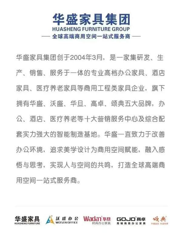 作為在“中國辦公家具重鎮(zhèn)”成長起來的龍頭企業(yè)以及中山市辦公家具行業(yè)協(xié)會會長單位,華盛希望向整個辦公家具產業(yè)和消費市場傳遞華盛穩(wěn)實、積極進取、值得信任和信賴的平臺型、服務型的企業(yè)形象,從而團結全市辦公家具行業(yè)力量,借力全國乃至全球資源,助力中山市“中國辦公家具重鎮(zhèn)”建設,助推中國辦公家具產業(yè)高質量發(fā)展,擴大區(qū)域知名度和行業(yè)影響力,讓辦公家具企業(yè)得以更好更快的發(fā)展,同時積極籌劃中山打造“中國商用家具之都”!