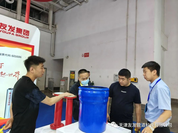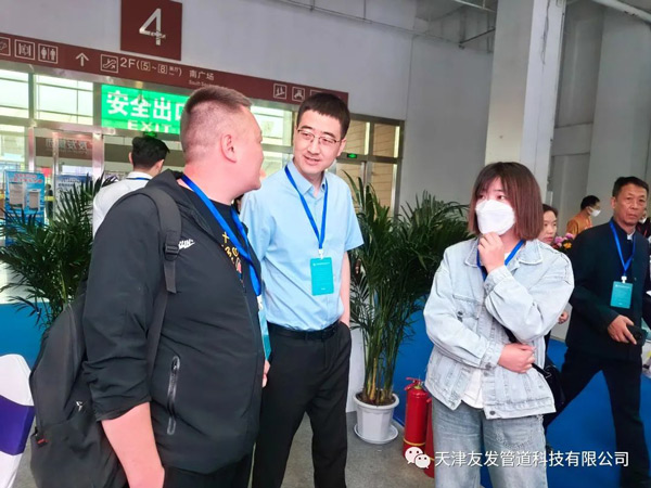 展會期間,友發(fā)管道科技工作人員積極準(zhǔn)備,郵寄樣品和伴手禮,提前到達(dá)展會現(xiàn)場進(jìn)行布展。精美的樣品吸引大量參觀者進(jìn)入到友發(fā)展位,工作人員專業(yè)的講解和細(xì)致的服務(wù)大大增加參觀者的體驗(yàn)感。此次展會,友發(fā)管道科技新品承插柔性接口防腐鋼管和外涂環(huán)氧內(nèi)襯聚四氟管吸引大量參觀者注意力,展位參觀咨詢的客戶往來不斷,絡(luò)繹不絕。