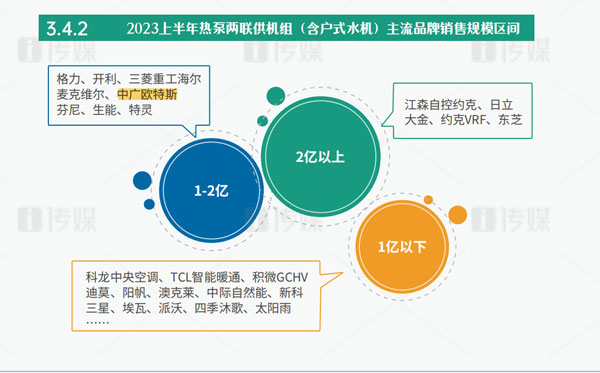 作為“熱泵行業(yè)領(lǐng)軍品牌”的中廣歐特斯,從2018年起逐步轉(zhuǎn)型向暖通與舒適家居領(lǐng)域滲透。經(jīng)過(guò)多年積累,中廣歐特斯在2023年上半年依然保持著逆勢(shì)而上的發(fā)展優(yōu)勢(shì),在主流品牌3億以下銷售規(guī)模中占據(jù)頭部位置。