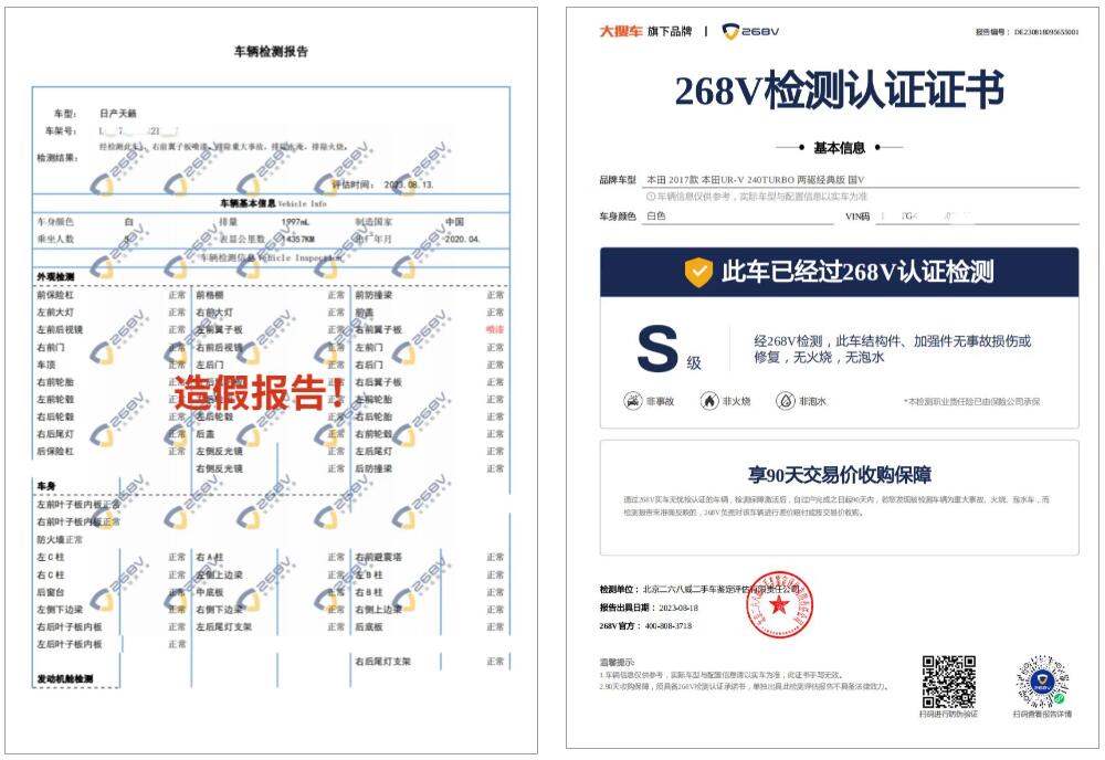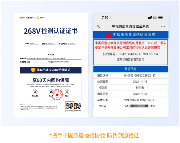 首先,268V官方提供的檢測報告,是支持“防偽溯源查詢”,每份報告均可驗證真?zhèn)巍OM者在買車時,如果檢測報告是268V的,直接掃描防偽查詢二維碼,對報告進行驗證,假報告第一時間不攻自破;