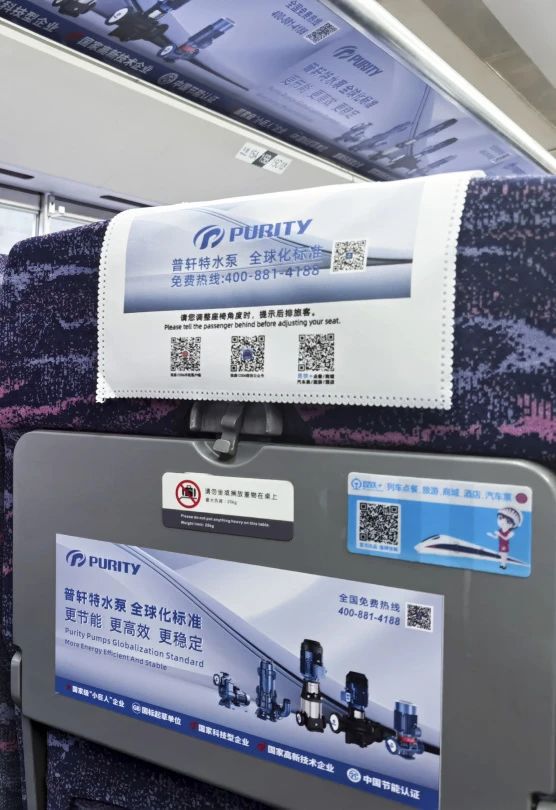 “普軒特號(hào)”高鐵專列以“普軒特水泵,全球化標(biāo)準(zhǔn)”為主旨,在車廂內(nèi)以全面覆蓋的宣傳形式,將專列打造成展示普軒特形象的“移動(dòng)展廳”,深度刻畫普軒特對(duì)全球標(biāo)準(zhǔn)的堅(jiān)定態(tài)度