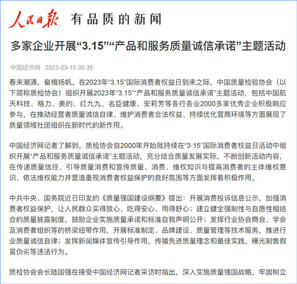 - 人民網(wǎng)發(fā)布:3·15“產(chǎn)品和服務(wù)質(zhì)量誠信承諾”主題活動舉行(2025-03-15)