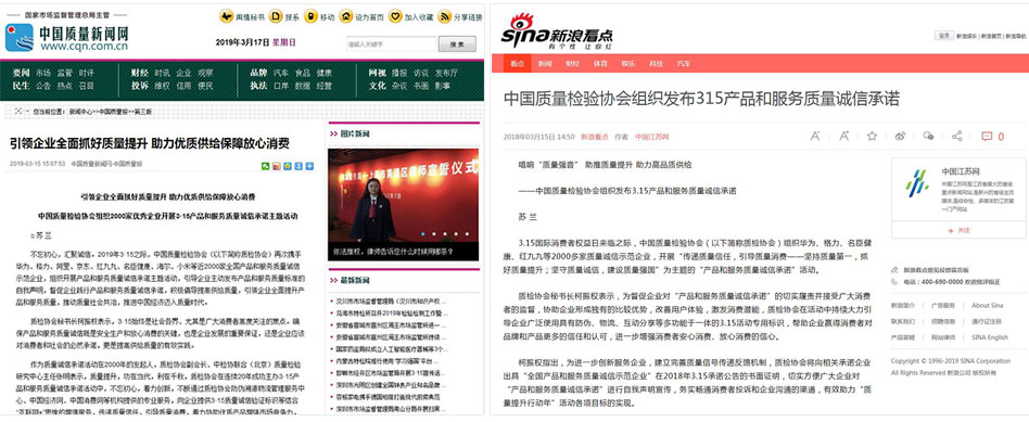•新浪看點(diǎn)《中國質(zhì)量檢驗(yàn)協(xié)會組織發(fā)布315產(chǎn)品和服務(wù)質(zhì)量誠信承諾》