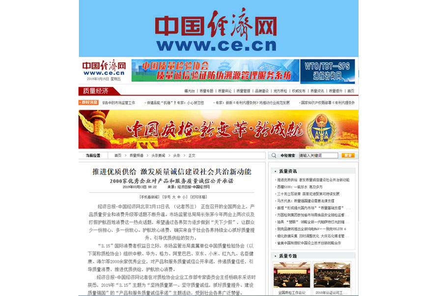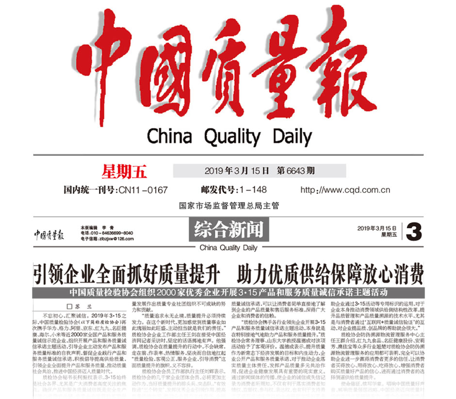 (備注:本新聞刊發(fā)于《中國質(zhì)量報(bào)》2019年3月15日刊第03版)